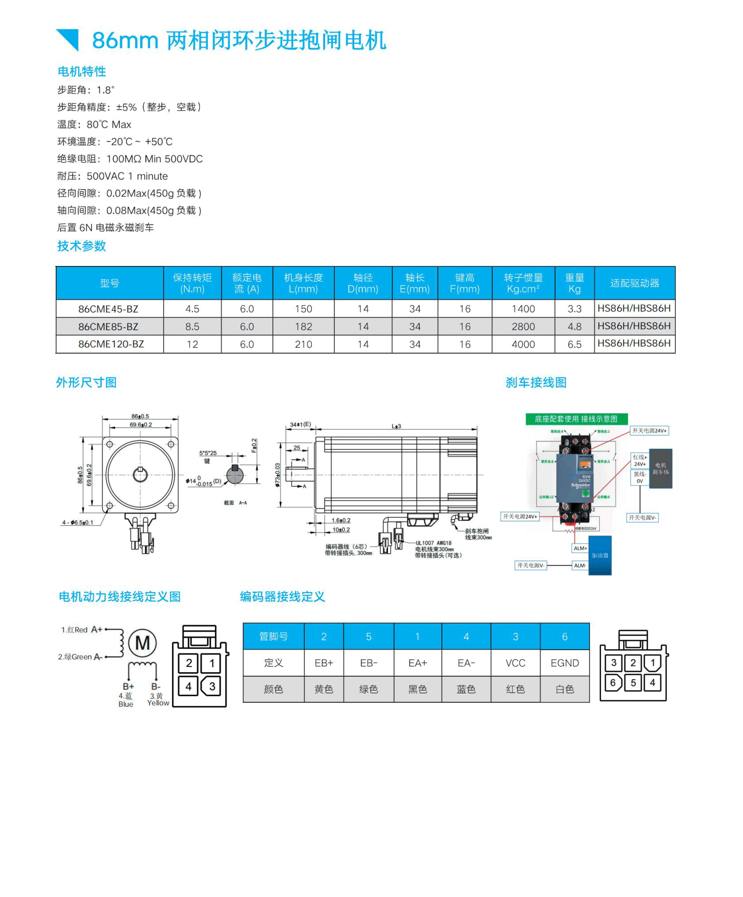 86mm 两相闭环步进抱闸电机